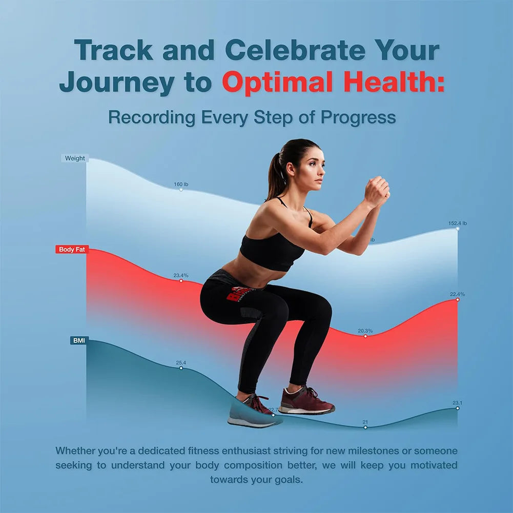 Get detailed body composition insights and track your progress seamlessly with our cutting-edge smart scale